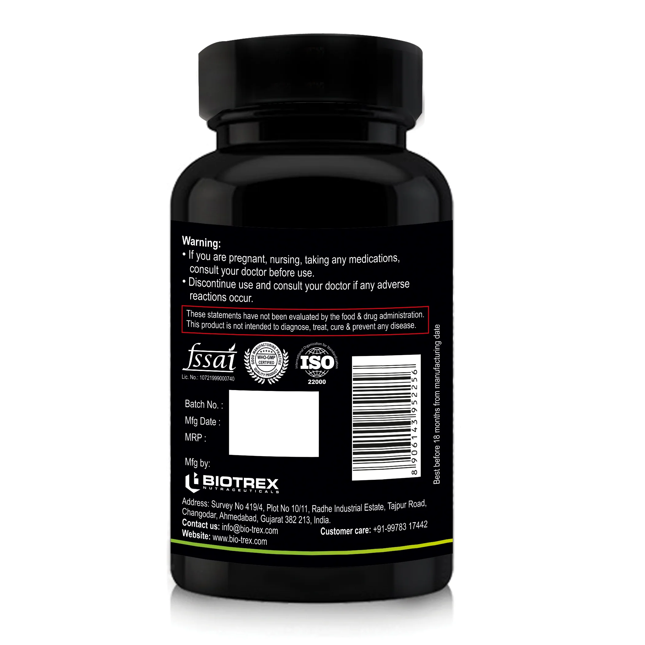 Biotrex Activated Charcoal 500mg Supplement For Healthy Digestive System - 60 Capsules