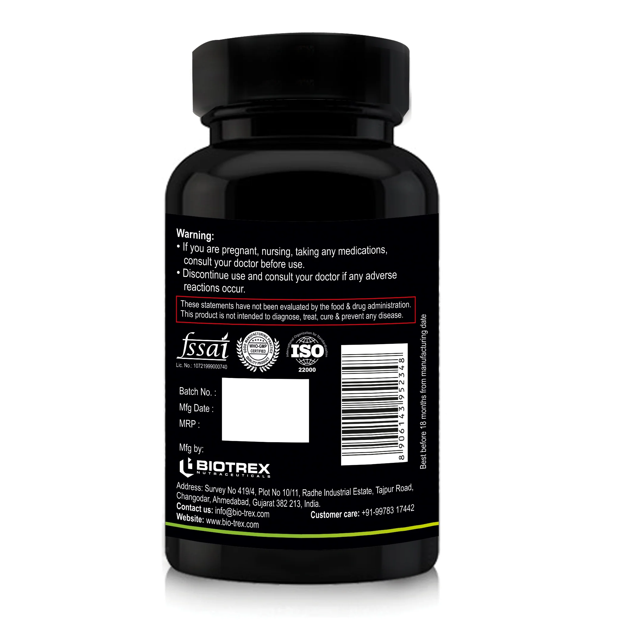 Biotrex Activated Charcoal 500mg Supplement For Healthy Digestive System - 60 Capsules